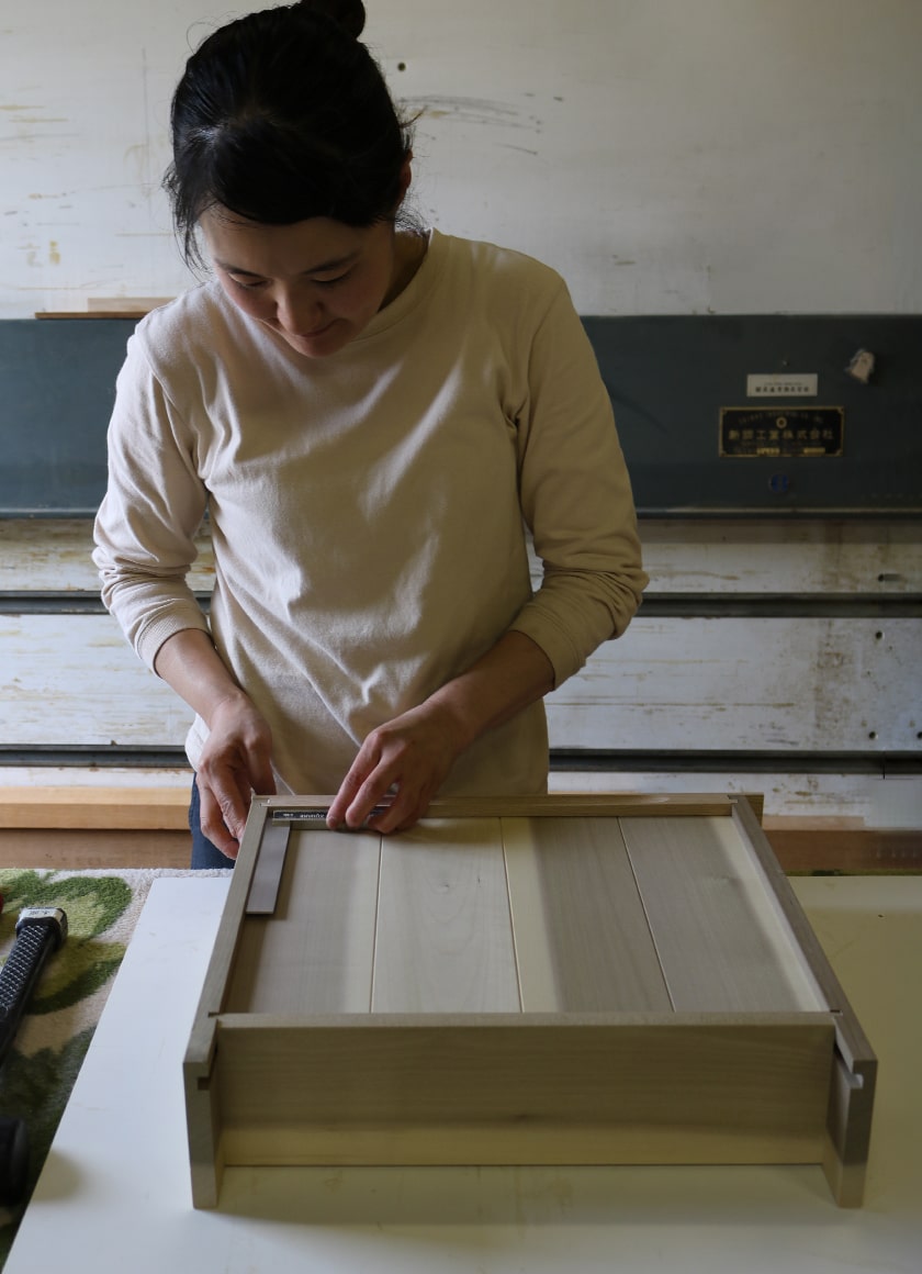木は、伐った時季によって木材の性質は異なります。最良の状態で製品づくりに活用するために水分を多く含んでいる木はしっかり乾燥させるなど、植物としての木、木材としての木、それぞれの性質を知っている必要があります。また、家具や生活用品として使用する場合には、その木がどのような方法で加工され、どのように使われてきたのかを理解し、木の特性に適した使い方をすることによって、永く、快適に使っていただけます。