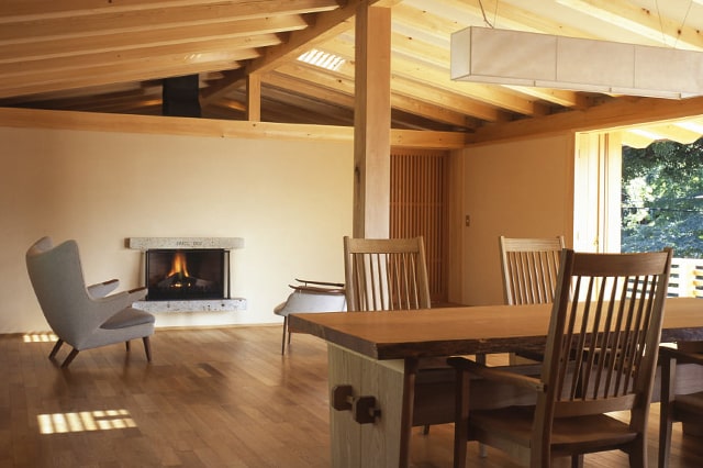 その技は、木造建築はもちろん、家具造りにも生かされています。テーブルなどの天板の反りを抑える「蟻桟(ありざん)」、食器棚や書棚など箱物の強固な構造体となる「框組み(かまちぐみ)」、テーブルや椅子の強度を求められる接合部に用いる「ほぞ組み」、箱の面を接合する「かんざし」など、伝統の技に独自の工夫を重ねて進化させ、100年使えるモノ造りを実践しています。