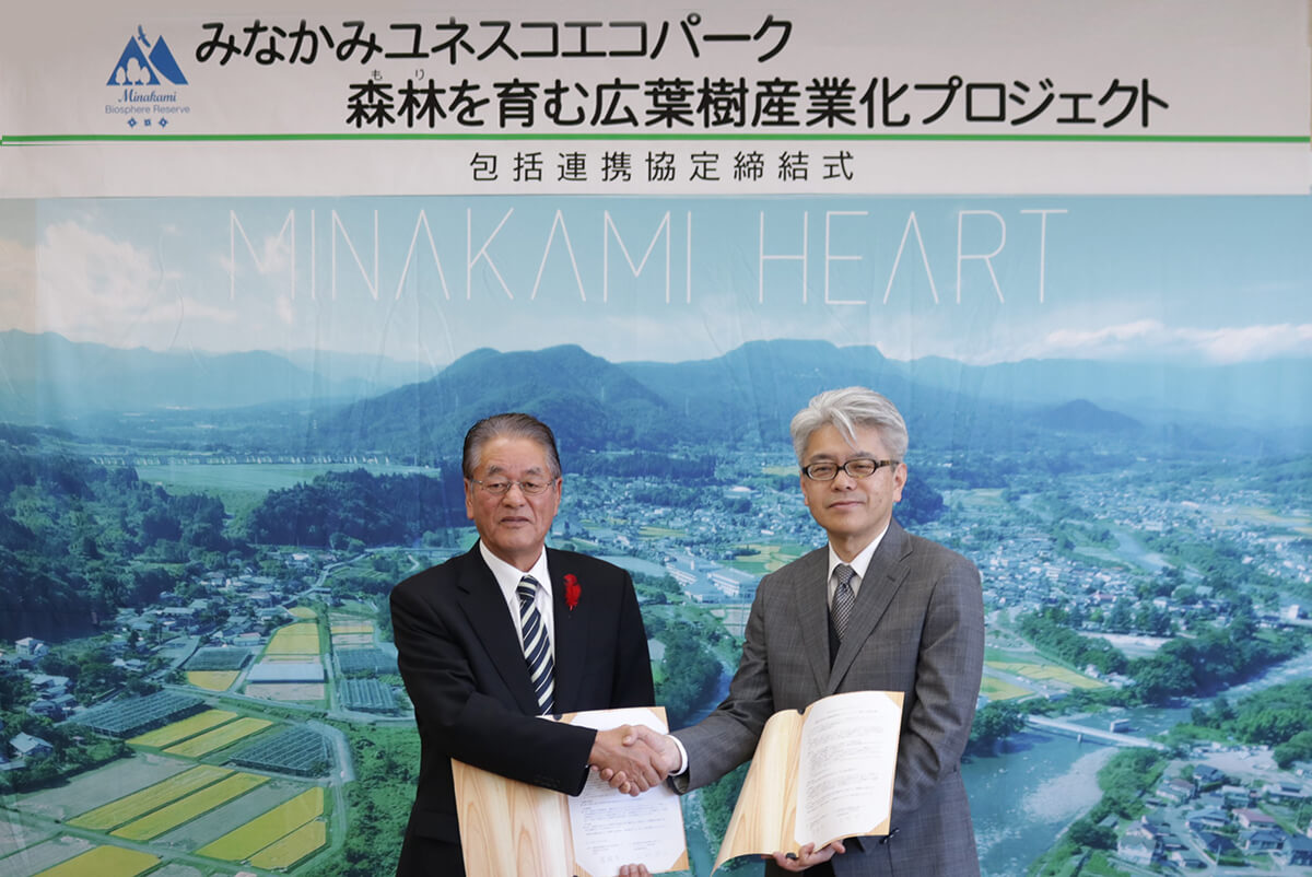 また、両者がこの先駆的取り組みを情報発信することで、国内全体の森林関係者のモデルとなり、様々な森林改善に波及することを視野に⼊れています。両者はユネスコエコパークの理念のもと、地域産広葉樹の有効活⽤と、「林業」「産業」「地域」の3つを繋ぐ事業モデルの確⽴を⽬指します。