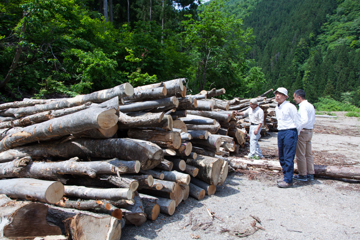 本巣市・根尾地域の森林から造林事業の過程で伐り出された広葉樹のうち、規格外とされているものを、県内の林業者・製材業者と3者連携することで⽊材として活⽤し、⽊製品化して市場で販売しています。