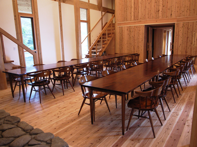 森を手入れをするために伐りだされた材を使ったダイニングセット