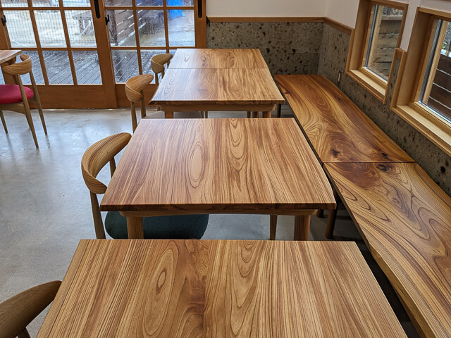 所有地のケヤキを活かしたドッグカフェのダイニングセット