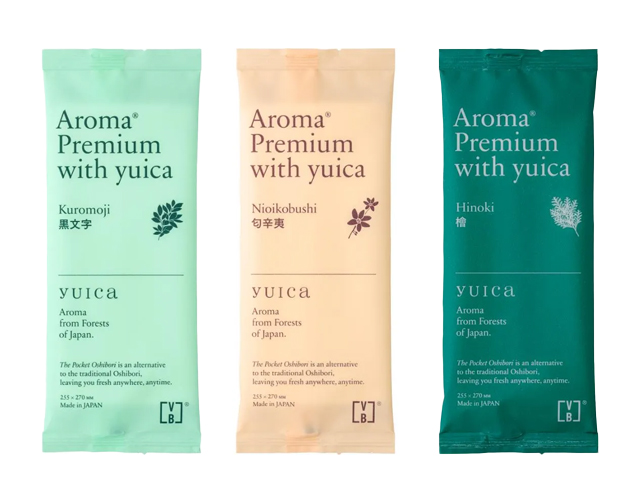 日本の森の香りの国産エッセンシャルオイルと保湿剤を配合したおしぼりなど
