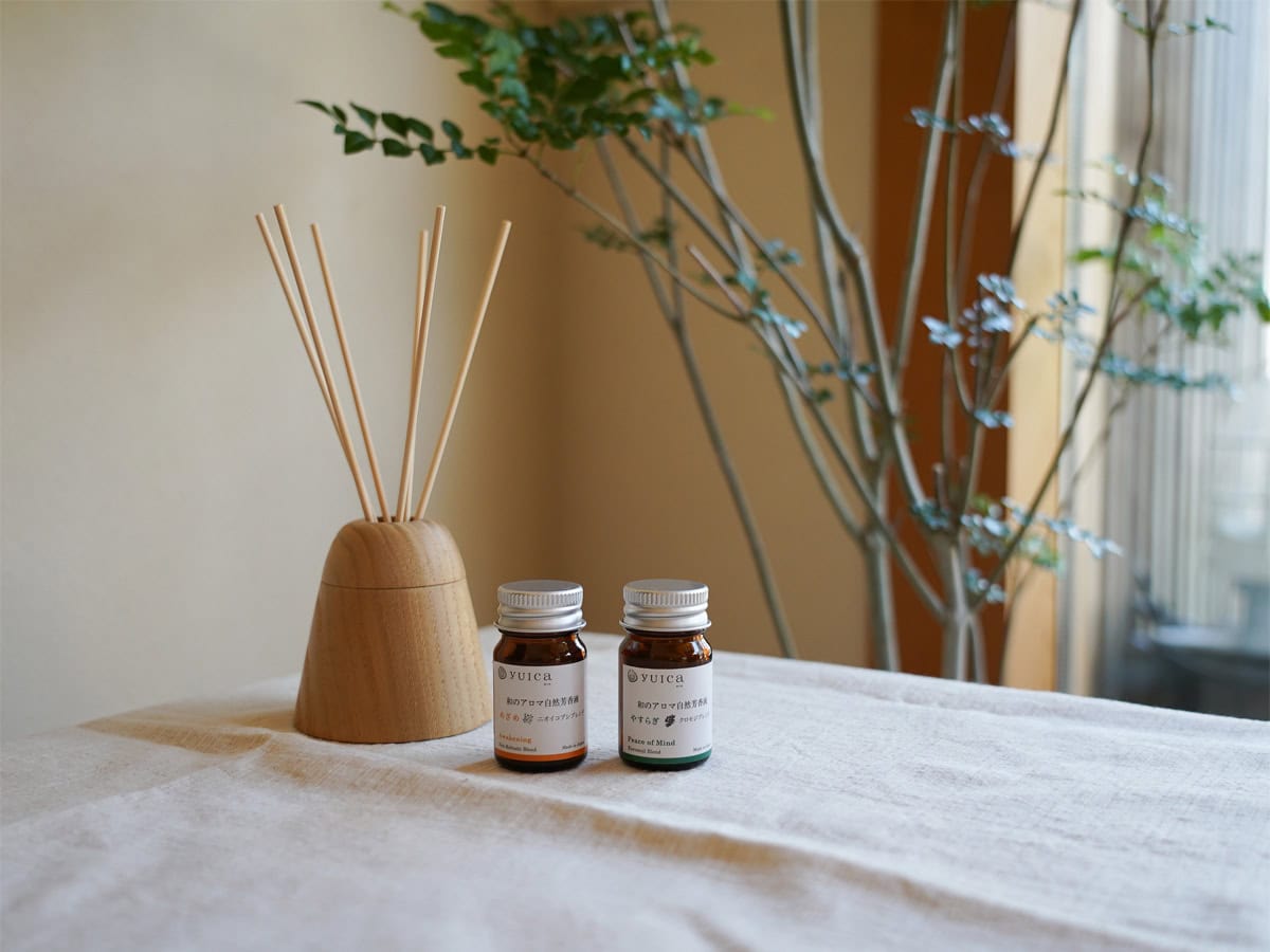 yuica「やすらぎ」ブレンドの精油をエタノールで希釈した自然芳香液です。