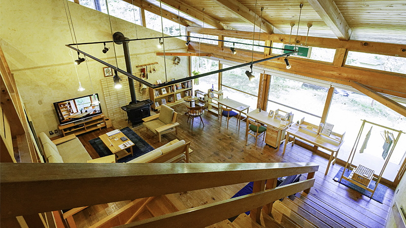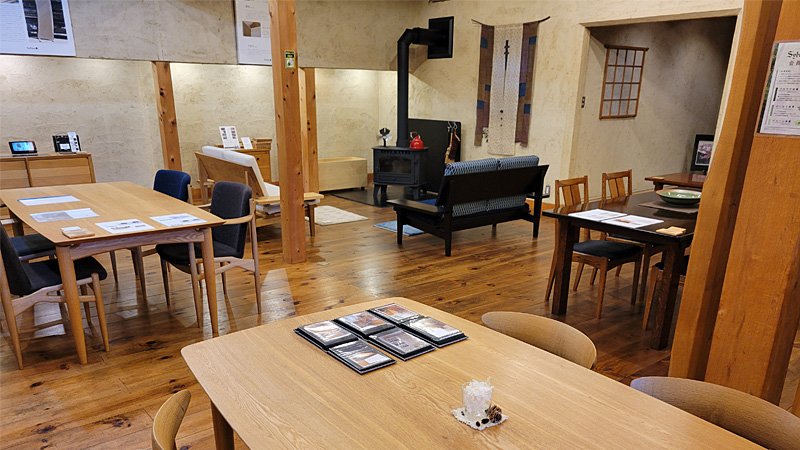 伝統的な木組みの技術を用いたテーブルセット、ソファ、椅子など大型の家具を展示しています。